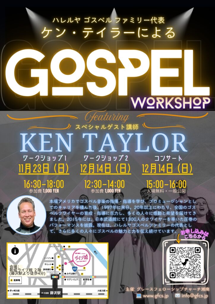 日本で20年以上ゴスペルクワイアの育成や指導に携わってきた、ケン・テイラー師によるゴスペルクワイアのワークショップです。